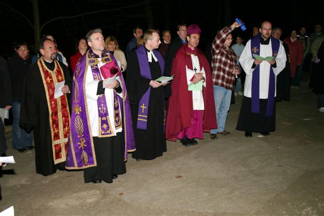 "Já bych ještě lehce doplnil, že jsme tady byli dříve i se zástupci husitské církve, které tady již několik let postrádáme. Ale v posledních letech je tady s námi Christof Lange z Českobratrské církve evangelické z Prahy - Žižkova a to kvituji dvojnásob, protože reformované církve většinou tuto pobožnost příliš v lásce nemají nebo spíše na ni nejsou zvyklé."